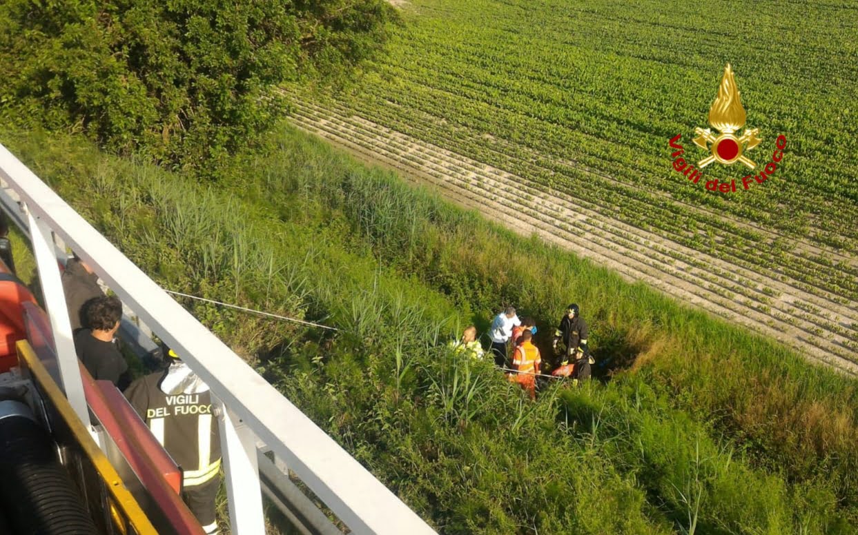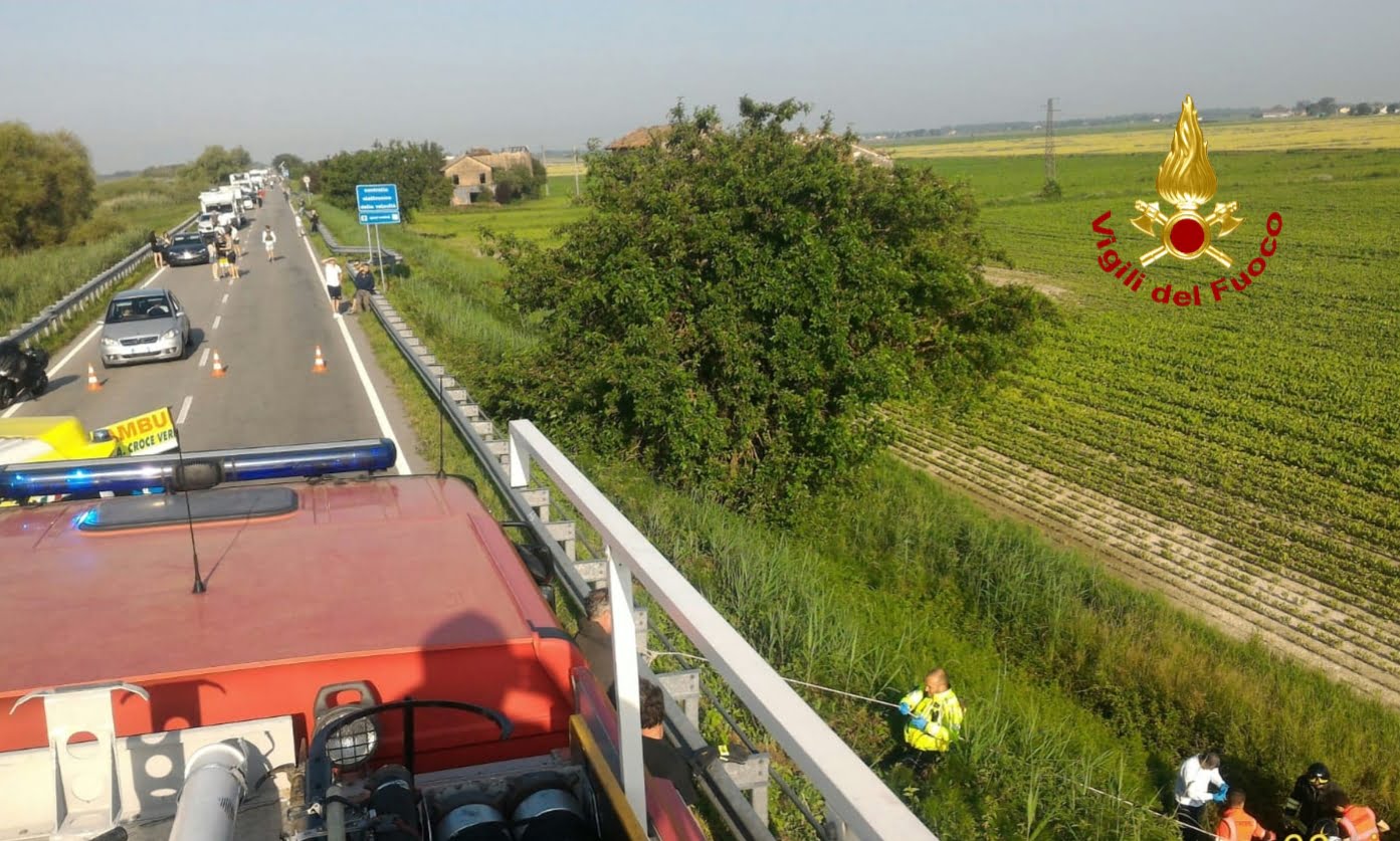 La squadra dei vigili del fuoco arrivati sul posto, hanno approntato con delle funi una discesa, raggiungendo con il personale sanitario il motociclista, finito nell'erba alta 5 metri sotto il piano stradale.