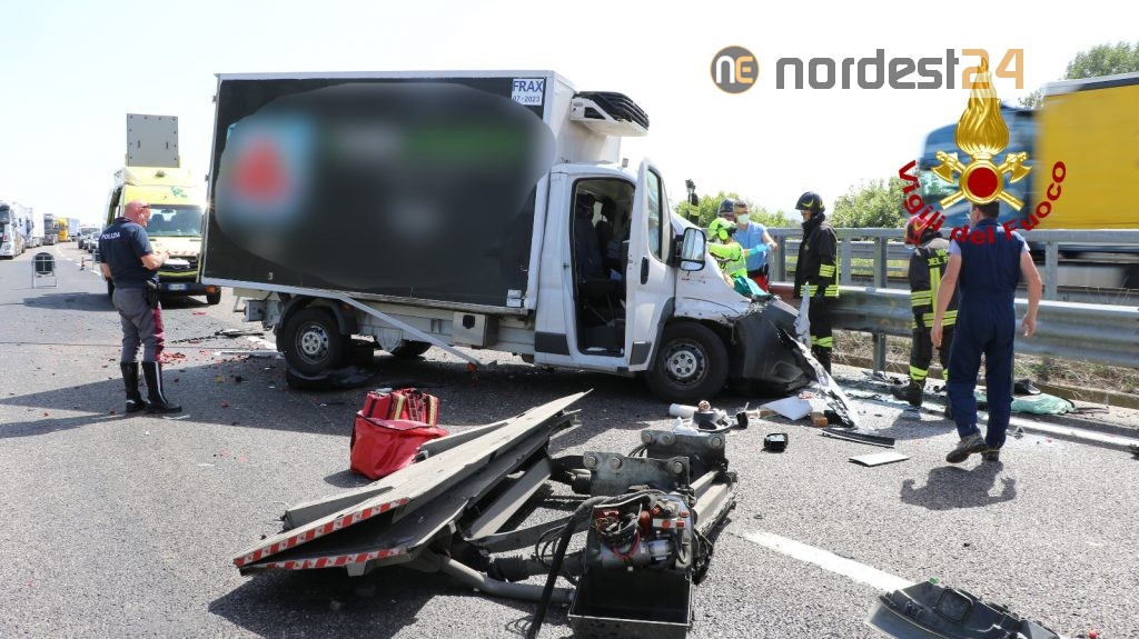 Alle 15:30, i vigili del fuoco sono intervenuti in autostrada tra l’allacciamento dell’A31 e Vicenza Nord per un incidente tra un camion di cui si è staccata la pedana di carico e un furgone cabinato: ferito l’autista del mezzo più leggero finito contro il guardrail.
