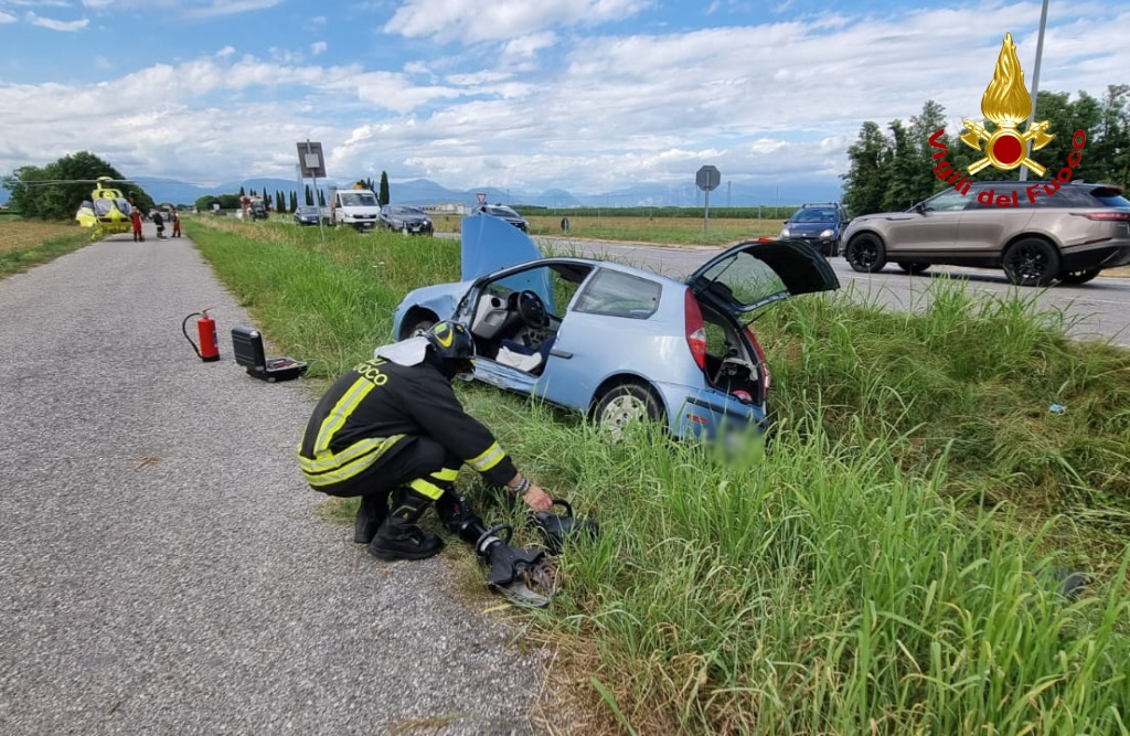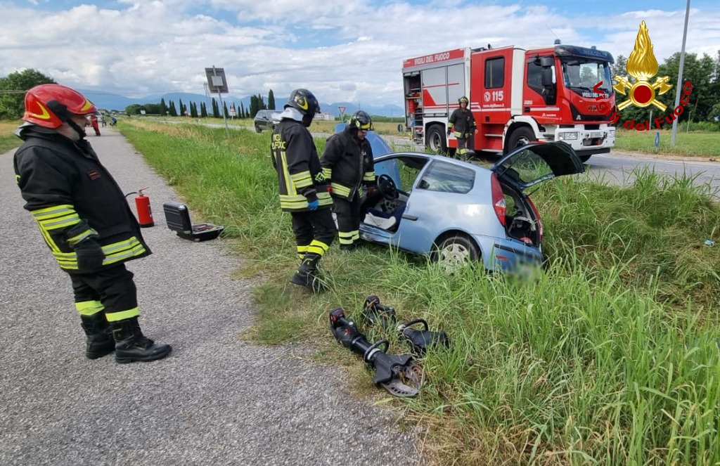 Immediatamente sono state inviate una squadra della sede centrale dei Vigili del fuoco di Udine e la squadra del distaccamento di Codroipo (UD); giunti sul posto i Vigili del fuoco hanno trovato due autovetture che si erano scontrate, una ferma a bordo strada e l’altra uscita dalla carreggiata ferma in un fossato con l’autista incastrato all’interno.
