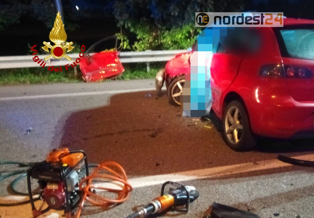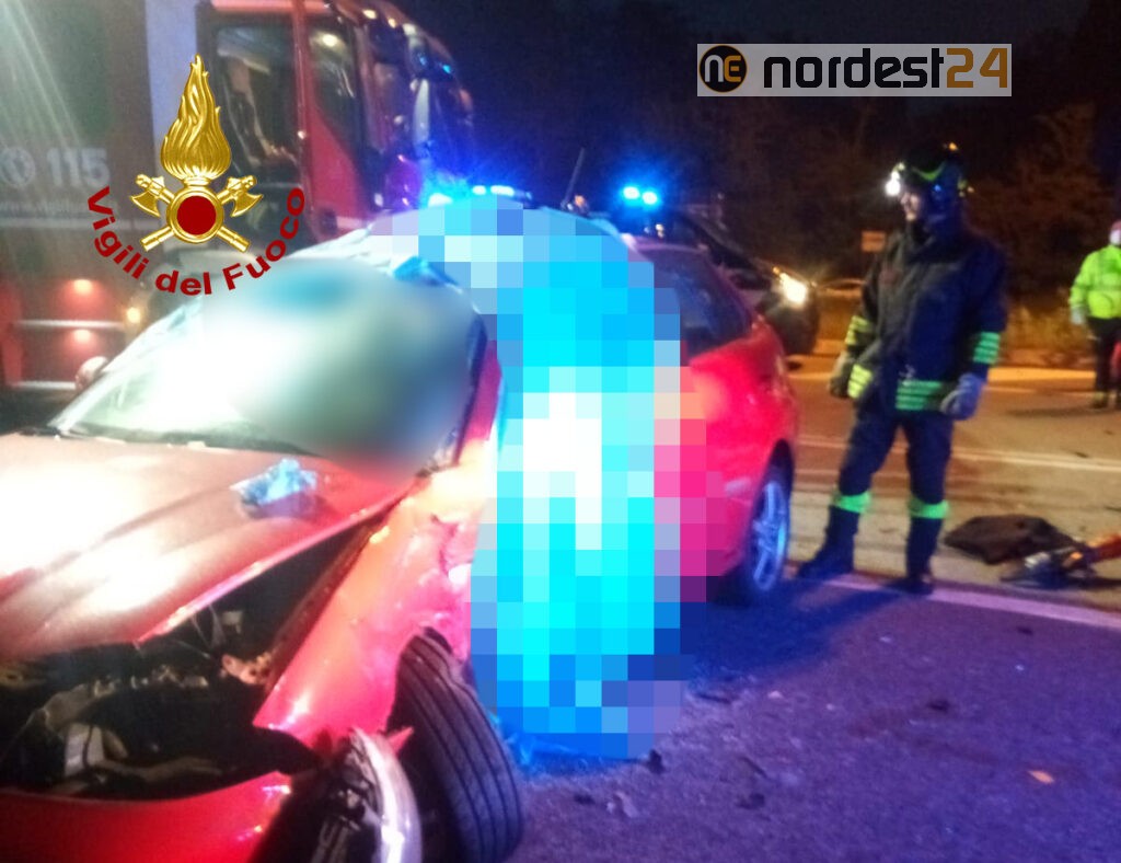 Alle 4:10 di domenica mattina i vigili del fuoco sono intervenuti in via Paliaga incrocio con via Triestina in località Ca' Noghera a Mestre in provincia di Venezia per lo scontro tra due auto: una persona deceduta e due feriti.