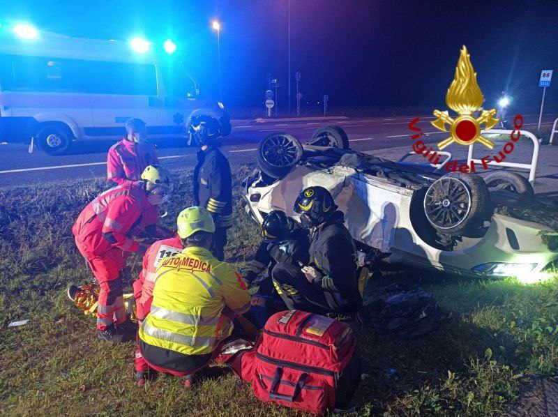 I Vigili del Fuoco di Pordenone sono intervenuti con la prima squadra della centrale per un incidente stradale avvenuto sulla strada statale 13 "Pontebbana" a Fiume Veneto, all'altezza del centro commerciale Emisfero.