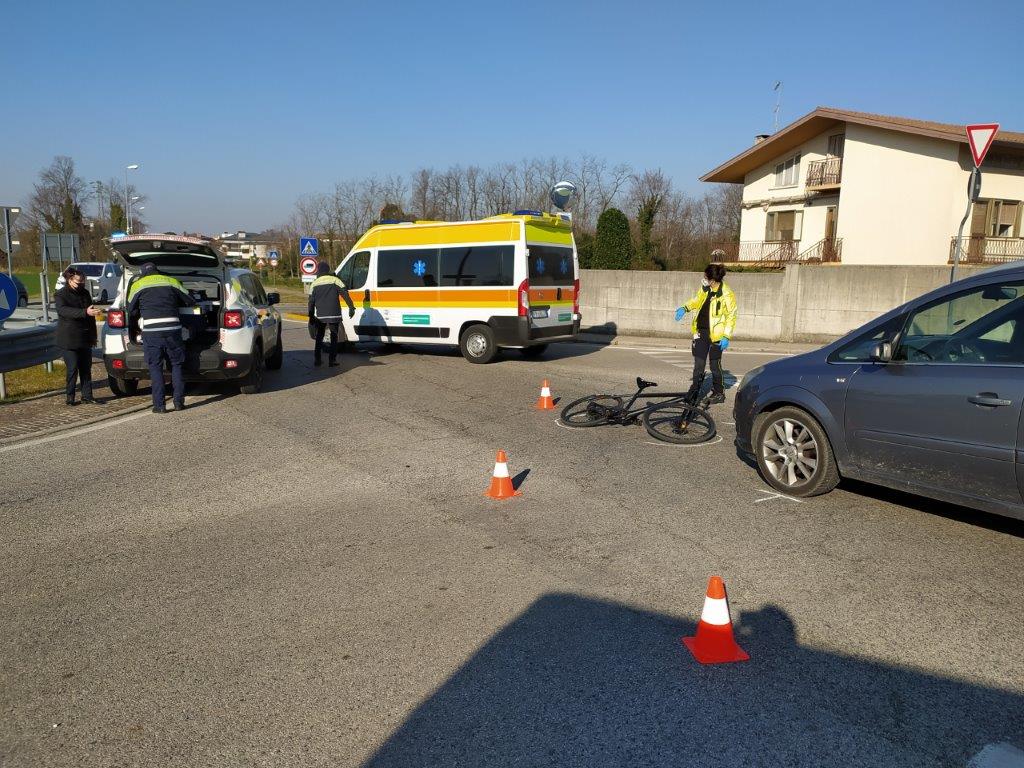 Incidente stradale nella prima mattinata odierna nella frazione di Basaldella del Comune di Campoformido. Alle 08:40 circa, alla rotatoria presente nella frazione di Basaldella, tra le Vie Verdi/Del Molino/della Roggia, è avvenuto un sinistro che ha visto coinvolto un velocipede e una autovettura.