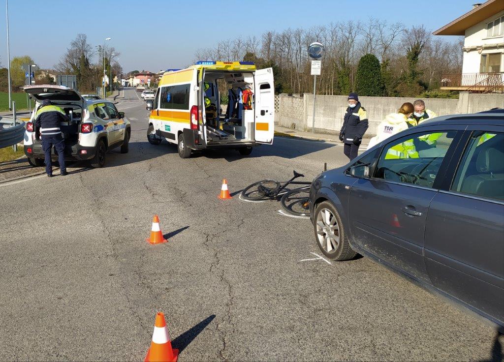Immediata la chiamata al 112 che ha inviato sul posto un ambulanza del 118 e la Polizia Locale di Campoformido - Pozzuolo del Friuli. Per cause in corso di accertamento da parte della Polizia Locale, giunta sul posto con due pattuglie, un ciclista S.D.V. di anni 29 residente a Campoformido, si è scontrato con una autovettura Opel Zaffira, condotta dalla 31 enne A.Z. residente a Teglio Veneto, il ciclista veniva soccorso dal personale del 118 e trasferito per gli accertamenti al P.S. di Udine. Disagi al traffico per circa un'ora, per permettere le operazioni di soccorso e i rilievi di legge.