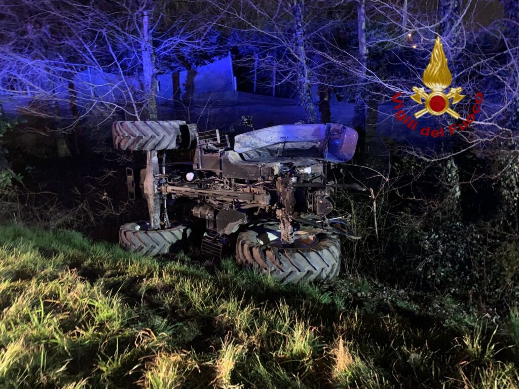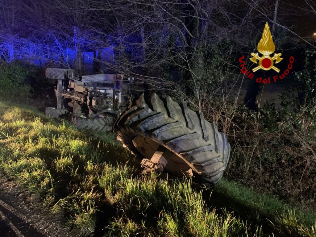 Scontro tra auto e trattore, il mezzo agricolo si ribalta: 2 feriti
