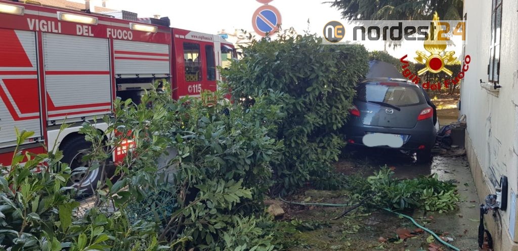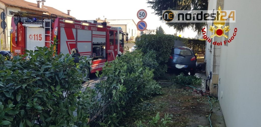 La vettura, che viaggiava verso il basso vicentino, ha divelto 10 metri di recinzione un contatore del gas e una fontana, finendo nel cortiletto interno di un’abitazione: ferita la donna alla guida.