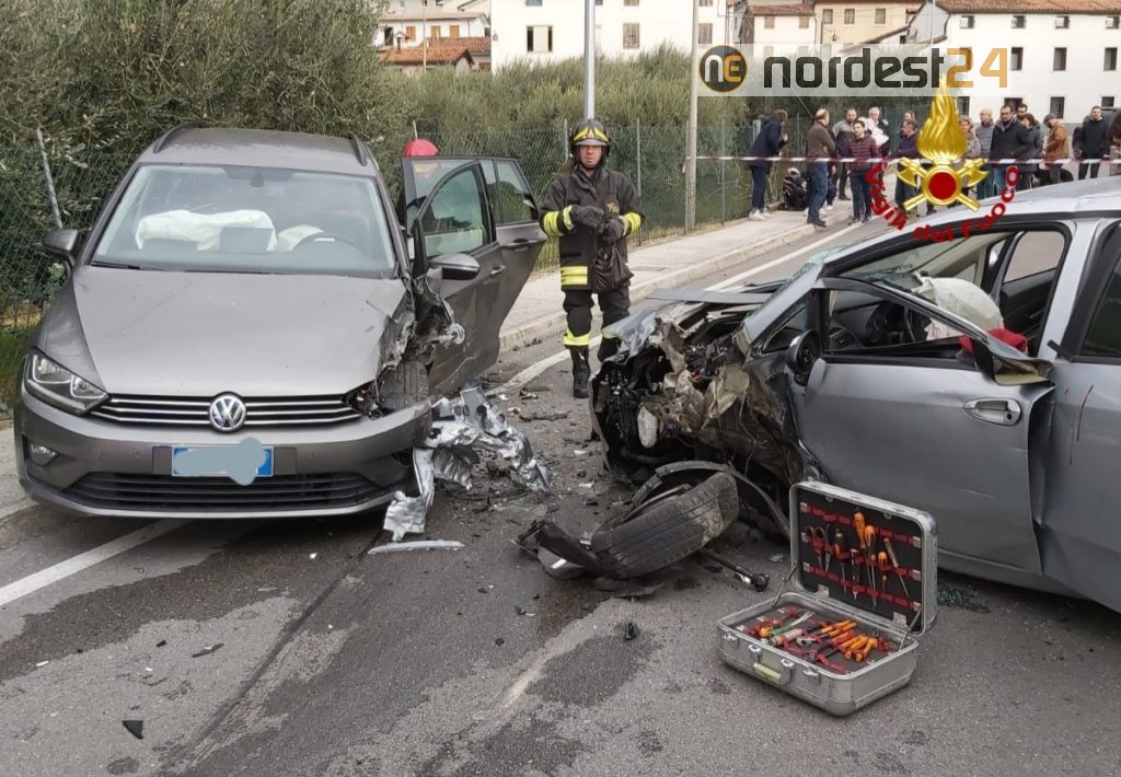 Poco prima delle 14:30, i vigili del fuoco sono intervenuti in via Calentiga a Pove del Grappa in provincia di Vicenza per uno scontro semi frontale tra due auto: sei feriti di cui due bambini piccoli.
