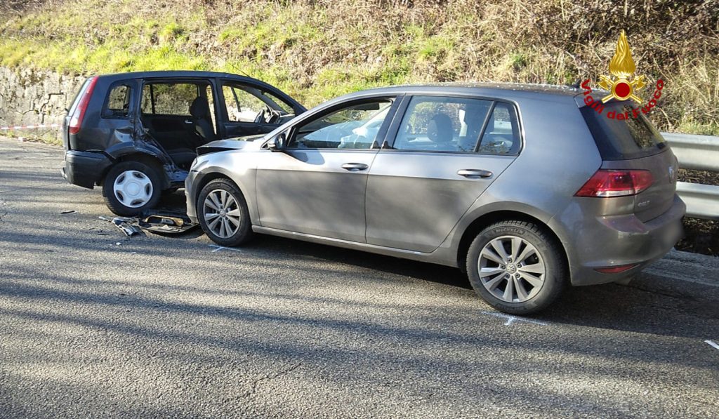 Ferita anche la conducente della Volkswagen Golf. Le due donne, rimaste ferite sono state stabilizzate dai sanitari del SUEM e trasferite in ospedale. I carabinieri hanno deviato il traffico ed eseguito i rilievi del sinistro. Le operazioni di soccorso dei vigili del fuoco sono terminate dopo circa un’ora.