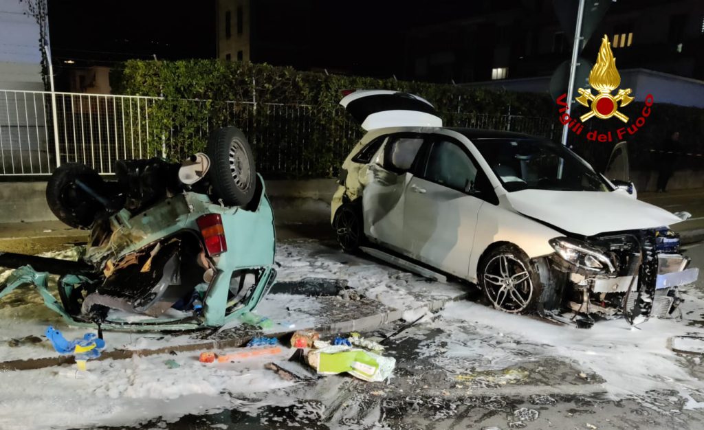 Scontro tra due auto, la Panda si rovescia: 2 feriti