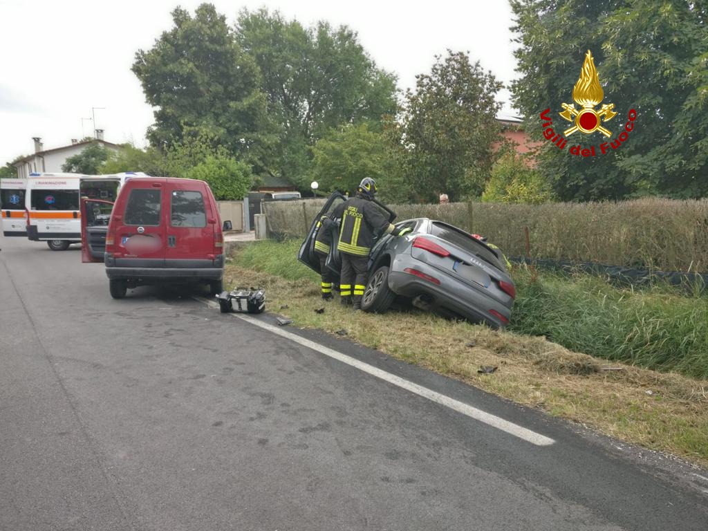 Scontro tra due auto, una finisce nel canale di scolo: 4 persone coinvolte