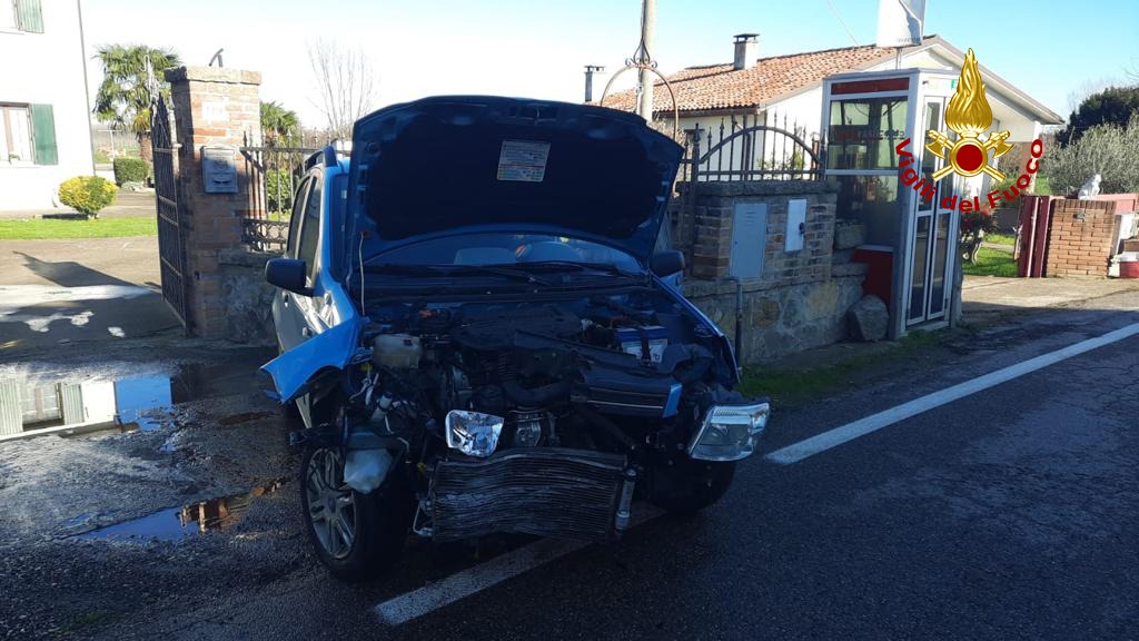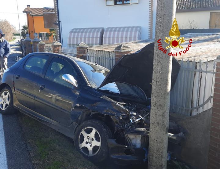 Alle 12:40, di martedì, i vigili del fuoco sono intervenuti in Via Correzzo a Stanghella in provincia di Padova per un incidente tra due auto di cui una finita nel fossato a bordo strada contro un palo di cemento: una persona ferita.