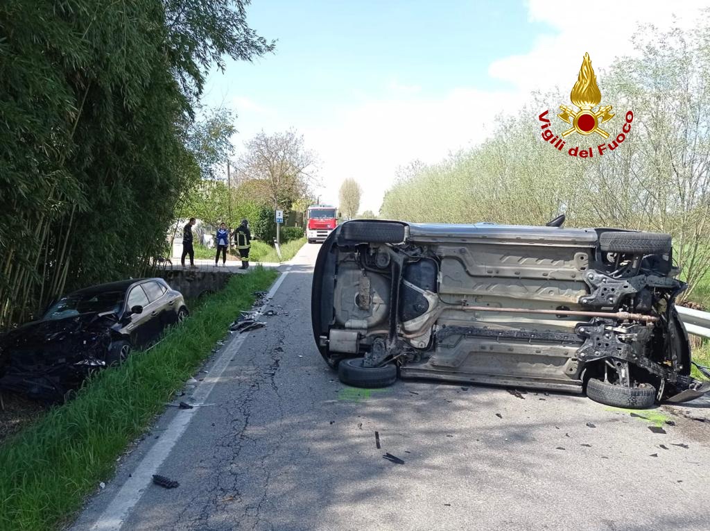 I pompieri arrivati dal distaccamento volontario di Borgoricco, hanno messo in sicurezza i mezzi ed estratto, da una Lancia Y rovesciata su un fianco in strada, le due bambine e la mamma. Ferito anche l’autista della Renault Megane finita nel fossato.