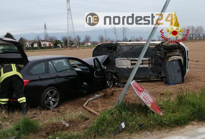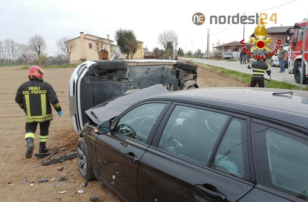 Scontro tra due auto, una si rovescia sul fianco: un ferito