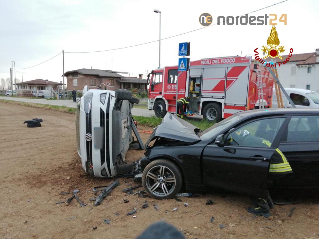 La squadra dei pompieri arrivata dal locale distaccamento, ha messo in sicurezza i mezzi ed estratto dall’auto rovesciata su un fianco il guidatore.