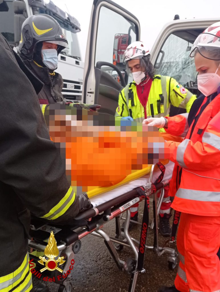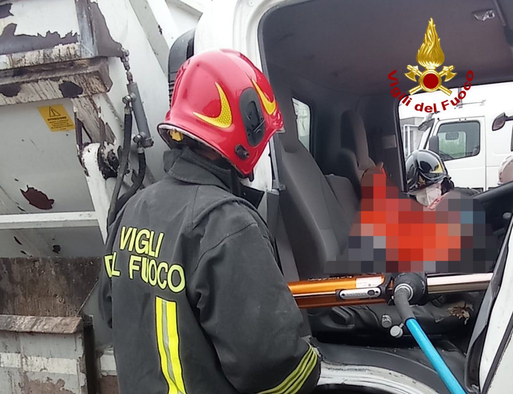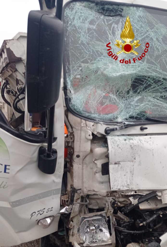 I pompieri arrivati dal locale distaccamento, hanno messo in sicurezza i mezzi ed estratto l’autista rimasto incastrato all’interno della cabina.