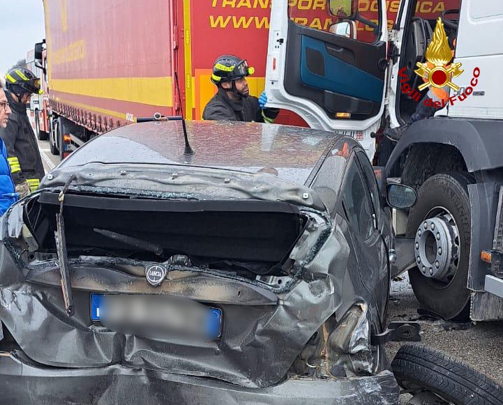 Illesi gli autisti dei mezzi pesanti. Le forze dell’ordine hanno deviato il traffico ed eseguito i rilievi dell’incidente.