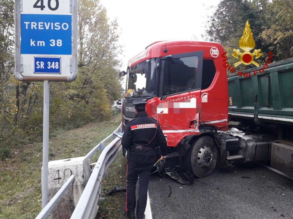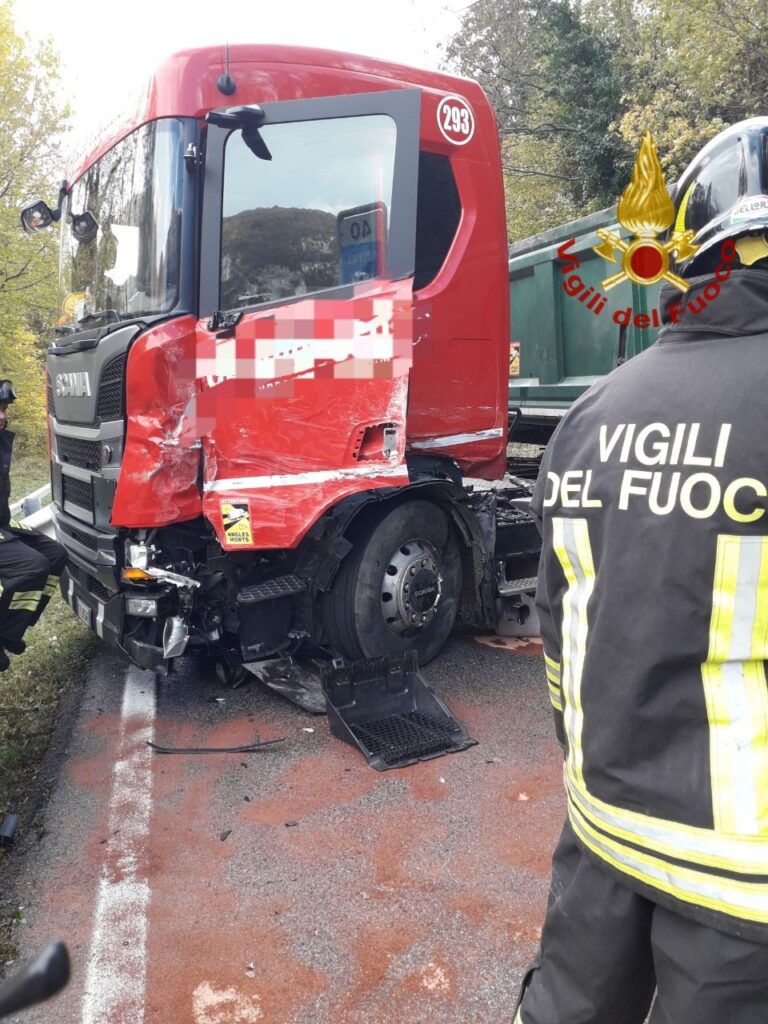 Ferito lievemente l’autista del mezzo pesante. La circolazione è al momento bloccata. I carabinieri hanno deviato il traffico ed eseguito i rilievi del sinistro. Sono ora in corso le operazioni di rimozione dei mezzi.