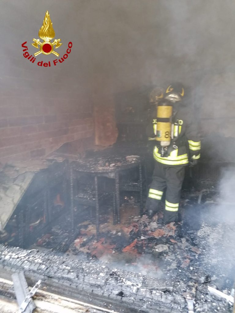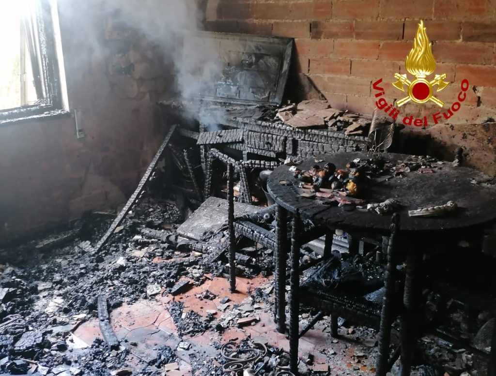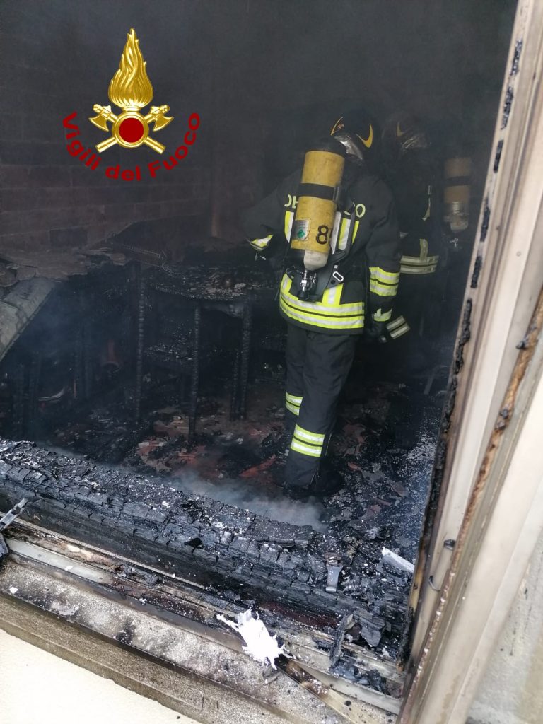 L’incendio ha bruciato gli arredi del soggiorno, causando danni da fumo a tutto l’appartamento. Il calore ha anche causato il danneggiamento delle pignatte del solaio del soggiorno. Inibito l’uso della stanza sovrastante del piano superiore.