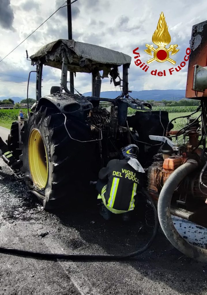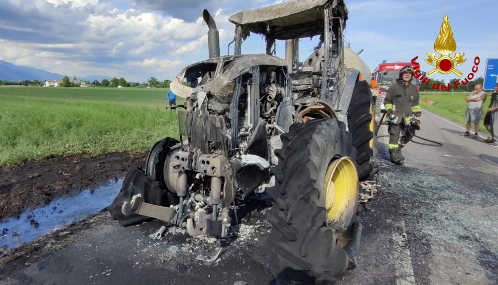 I pompieri arrivati da Bassano del Grappa con un’autopompa, un’autobotte e 5 operatori, hanno spento il trattore andato irrimediabilmente danneggiato insieme a un palo dell’utenza telefonica.