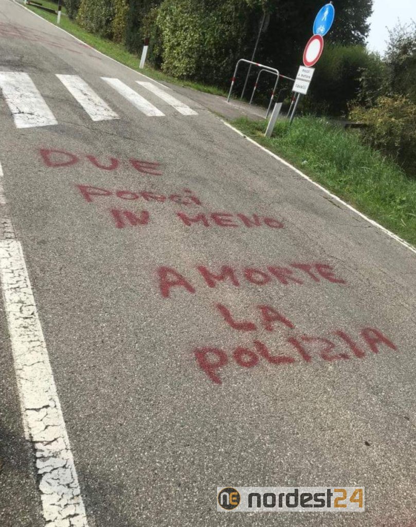 A Medolla, in provincia di Modena, sono comparse delle scritte che inneggiano alla scomparsa dei poliziotti assassinati a Trieste.