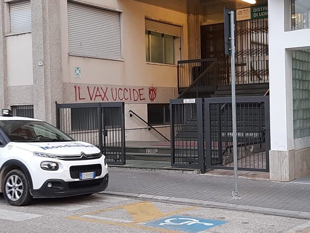 Scritte "No-vax" sui muri del Distretto sanitario di Udine
