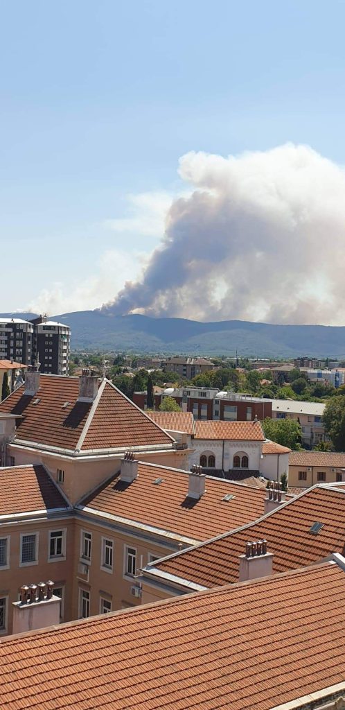 L'incendio, su cui operano i pompieri sloveni è reso complesso nelle operazioni di spegnimento dal vento di bora.