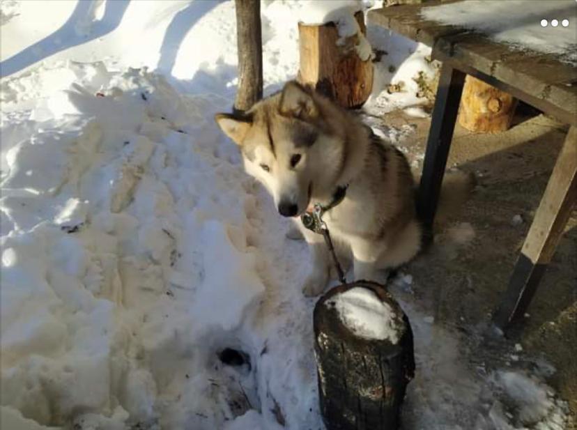 Si cerca Pascal nella zona del Bivacco dei Lòff: un Alaskan Malamute bianco a chiazze grige