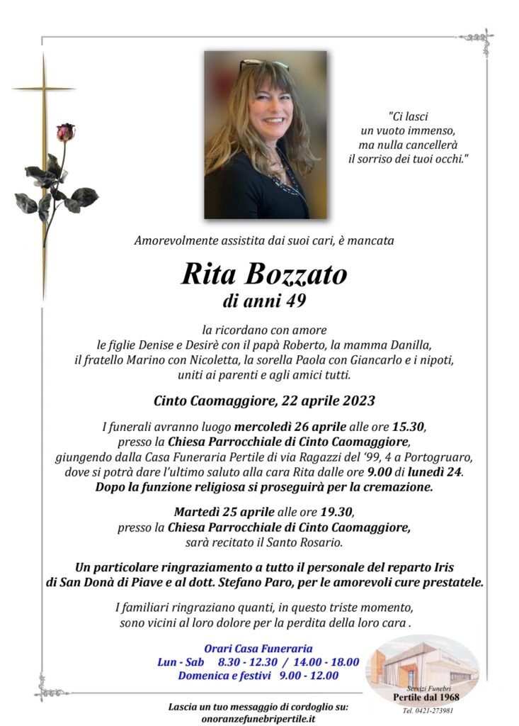 Rita Bozzato era originaria di Portogruaro, ma viveva a Cinto Caomaggiore con la sua famiglia. Ogni mattina, accompagnava le sue figlie a scuola, dimostrando un grande amore e una grande dedizione per la sua famiglia. Era una donna molto determinata e ambiziosa, che aveva iniziato a lavorare per un'azienda di cosmetici e che aveva raggiunto importanti traguardi nella sua carriera.