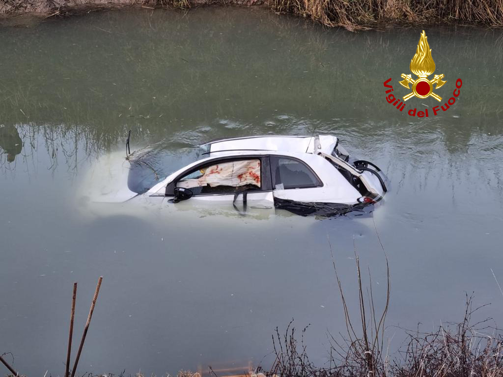 Si inabissa nel canale con l'auto restando incastrata: salvata dai pompieri