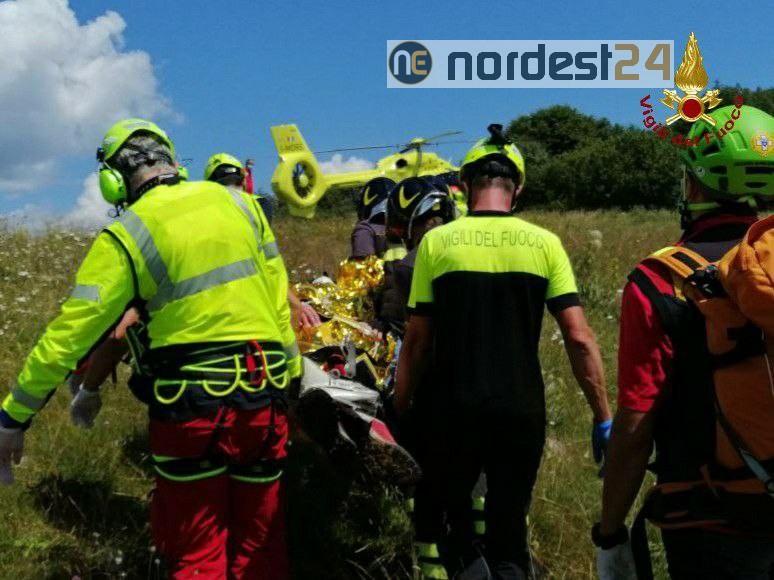 Un' ottima sinergia di equip tra personale del 118 arrivato con elisoccorso ed ambulanza, soccorso alpino e vigili del fuoco hanno permesso il recupero del ferito dal ripido pendio.