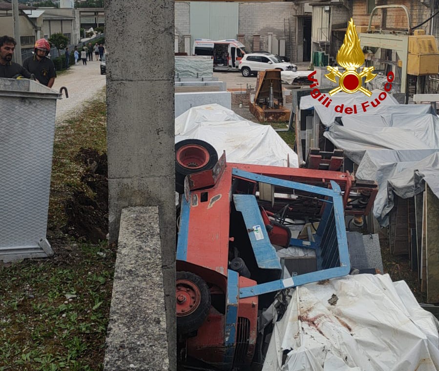 Si ribalta con il muletto nell'azienda di marmi: morto sul colpo