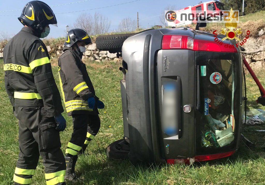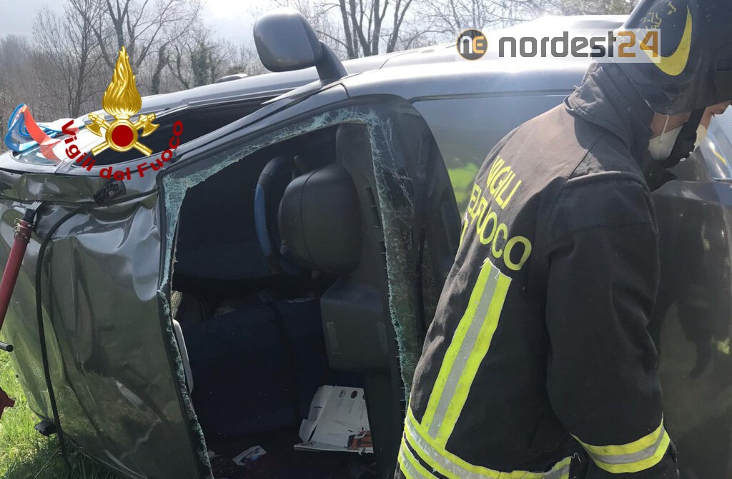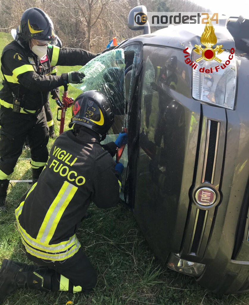 I pompieri arrivati da Arzignano, hanno messo in sicurezza la Fiat Panda stabilizzandola con dei pali telescopici, provvedendo poi al taglio del parabrezza per estrarre l’autista 40enne, rimasto incastrato al posto guida.