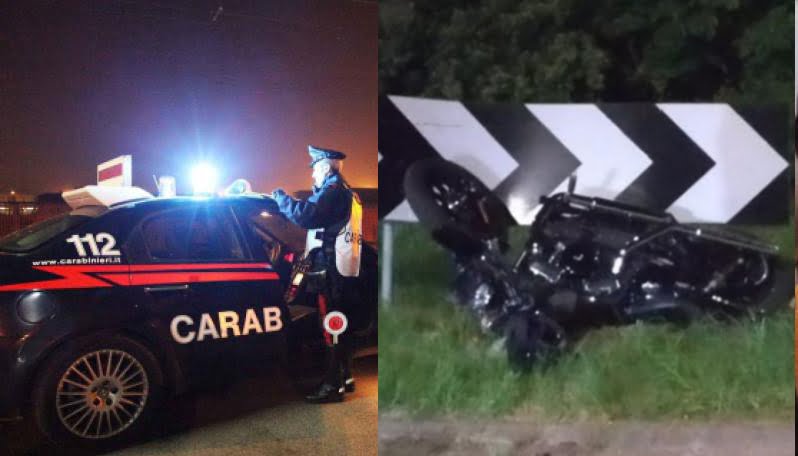 Tragedia della strada questa sera poco dopo le 22:30 quando per cause in corso di accertamento un motociclista si è schiantato a bordo della propria Harley Davidson contro una rotonda.