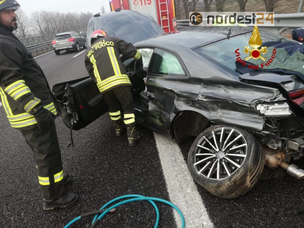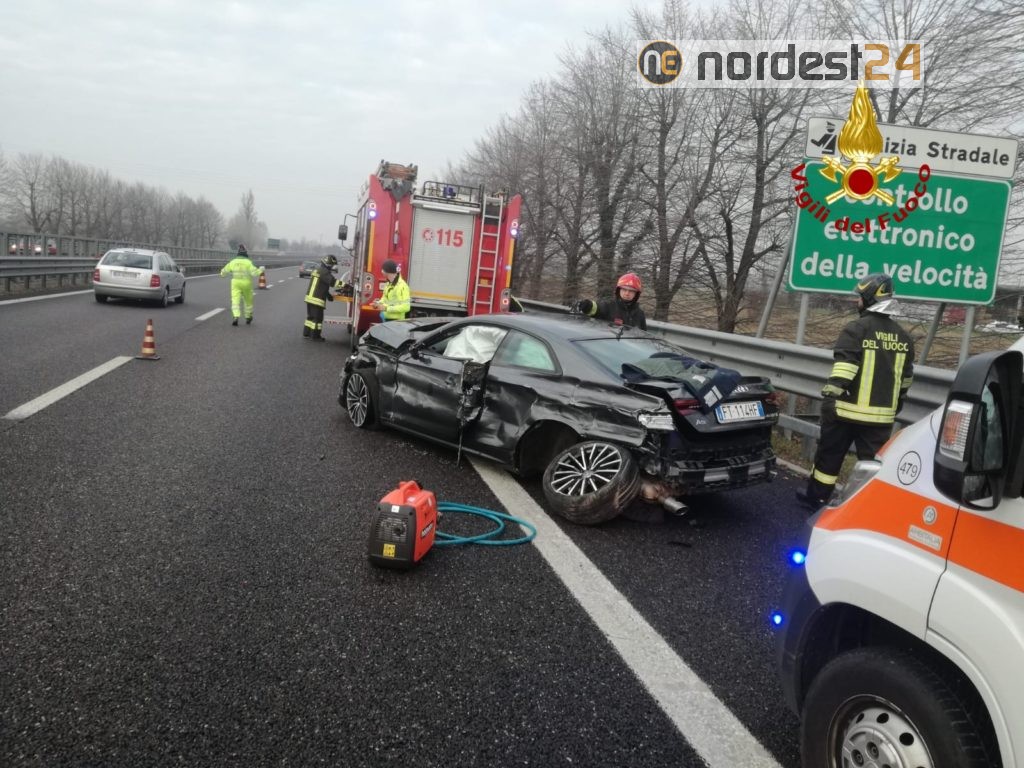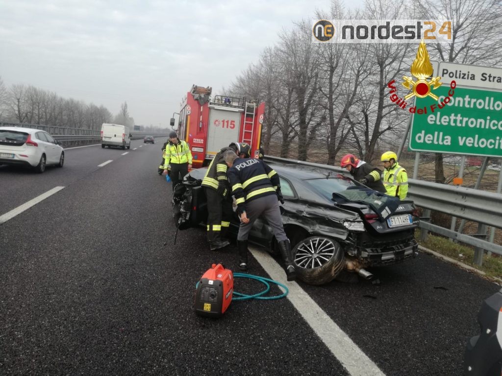 Si schianta con l'Audi contro il guard-rail in autostrada: incastrato