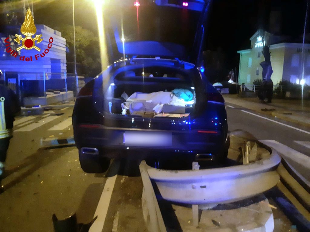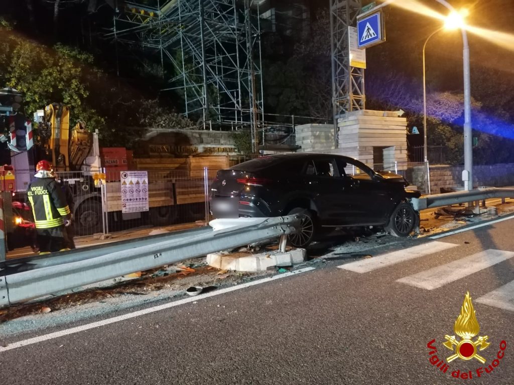 Incidente stradale ieri sera primo marzo verso le ore 22:30 sulla SR 14 Strada costiera in prossimità dell'Hotel Riviera & Maximilian's a Trieste. Una Mercedes Gle 350 4matic coupé