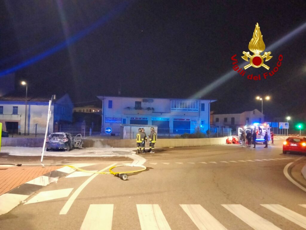 Alle 5:00, di domenica mattina, i vigili del fuoco sono intervenuti lungo la strada provinciale Pasubio nella rotatoria del Botteghino a Costabissara in provincia di Vicenza per l’incendio di un’auto dopo la perdita di controllo dell’autista finita con il mezzo contro un muro: ferite due ragazze venute fuori dall’auto seppur ferite.