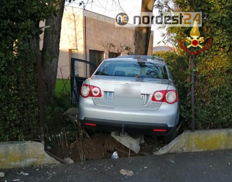 Nell'incidente è stato divelto il muro di recinzione di un'abitazione.