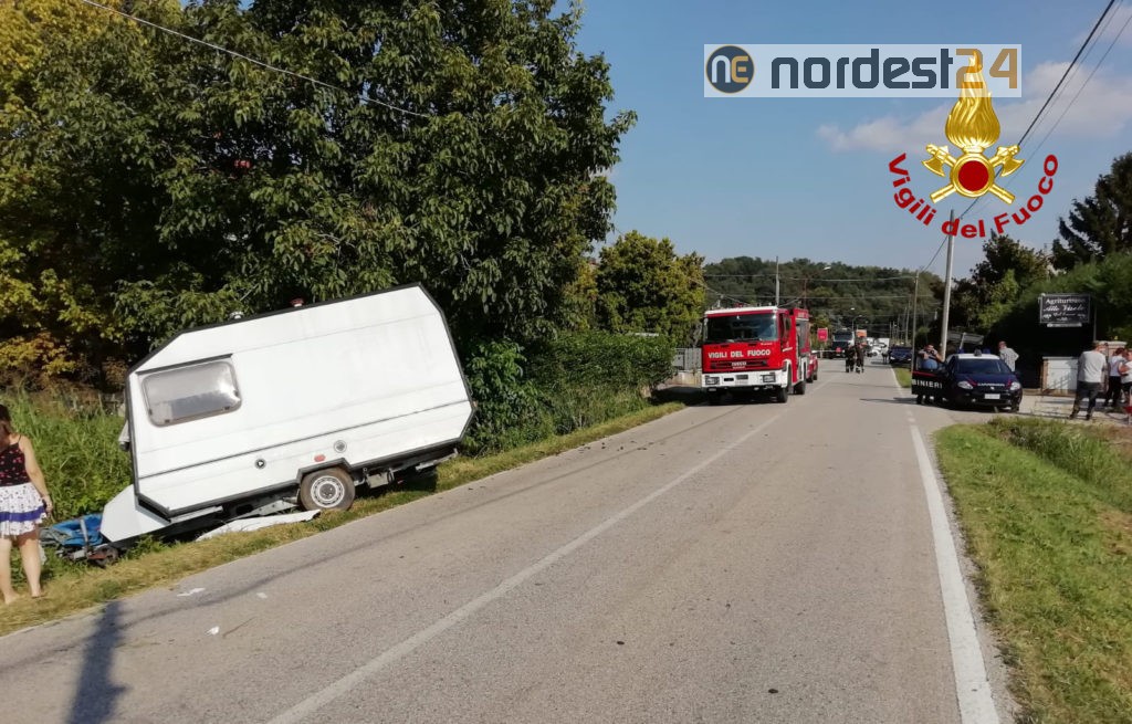 Poco dopo le 15:30, i vigili del fuoco sono intervenuti lungo la SP22 Calderina a Gambellara in provincia di Vicenza per una roulotte staccatasi dal gancio traino di un camper, che ha investito due g...