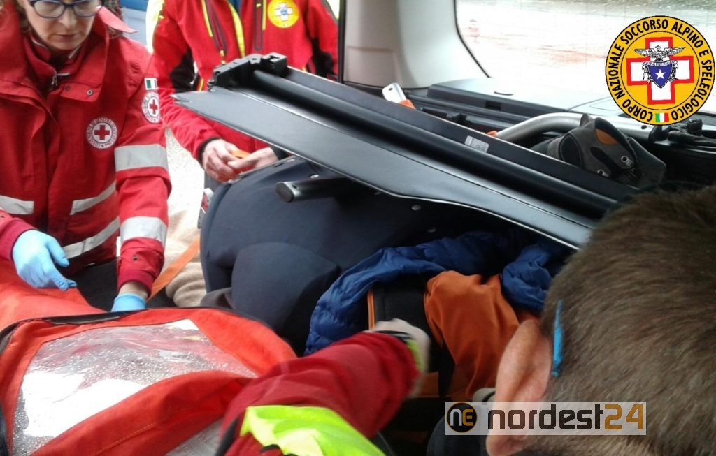 Poi la donna è stata raggiunta con un tratto di circa duecento metri a piedi e trasportata in portantina fino all'automezzo del Soccorso Alpino e di qui all'ambulanza.