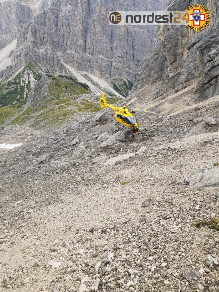 Poiché le nubi basse non ne consentivano l'avvicinamento, l'elicottero del Suem di Pieve di Cadore ha imbarcato cinque tecnici del Soccorso alpino di San Vito di Cadore riuscendo a sbarcarli in hovering a 2.000 metri di quota all'altezza di Forcella Piccola.