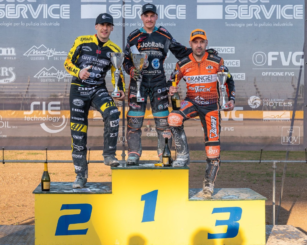 TERENZANO (UD) - È andata a Nicolas Vicentin la seconda tappa del campionato italiano speedway. Il pilota del Moto Club Lonigo si è imposto nell’ovale di Terenzano, che per l’occasione ha aperto le porte per la prima volta nel 2026. A organizzare la gara è stato il Mc Olimpia. Nell’impianto friulano il rider del team veneto è tornato sul gradino più alto del podio dopo una lunga pausa, dimostrando di essere competitivo e di avere le carte in regola per poter lottare per la conquista dello scudetto. In seconda posizione si è piazzato il portacolori di casa Michele Paco Castagna, il cui impegno è stato condizionato da una caduta rimediata pochi giorni prima della sfida. In terza posizione l’altro alfiere del Mc Lonigo, Nicolas Covatti, autore di una prova regolare.