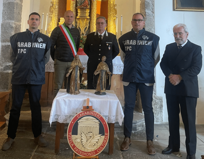 Rubate 56 anni fa, i Carabinieri di Udine le ritrovano in vendita online: restituite due statue a Sauris