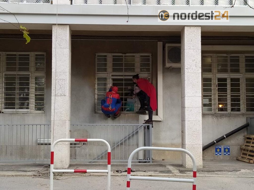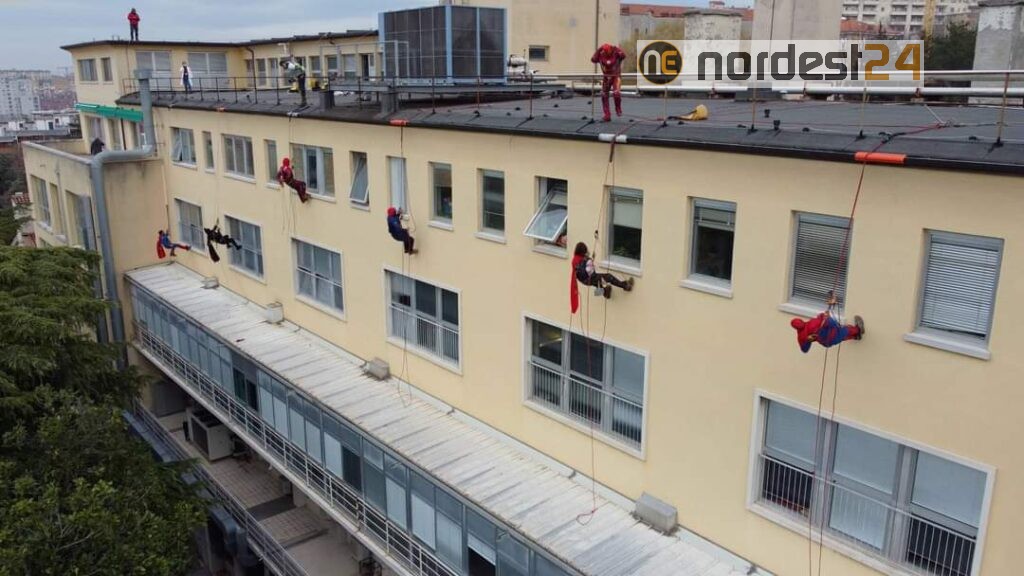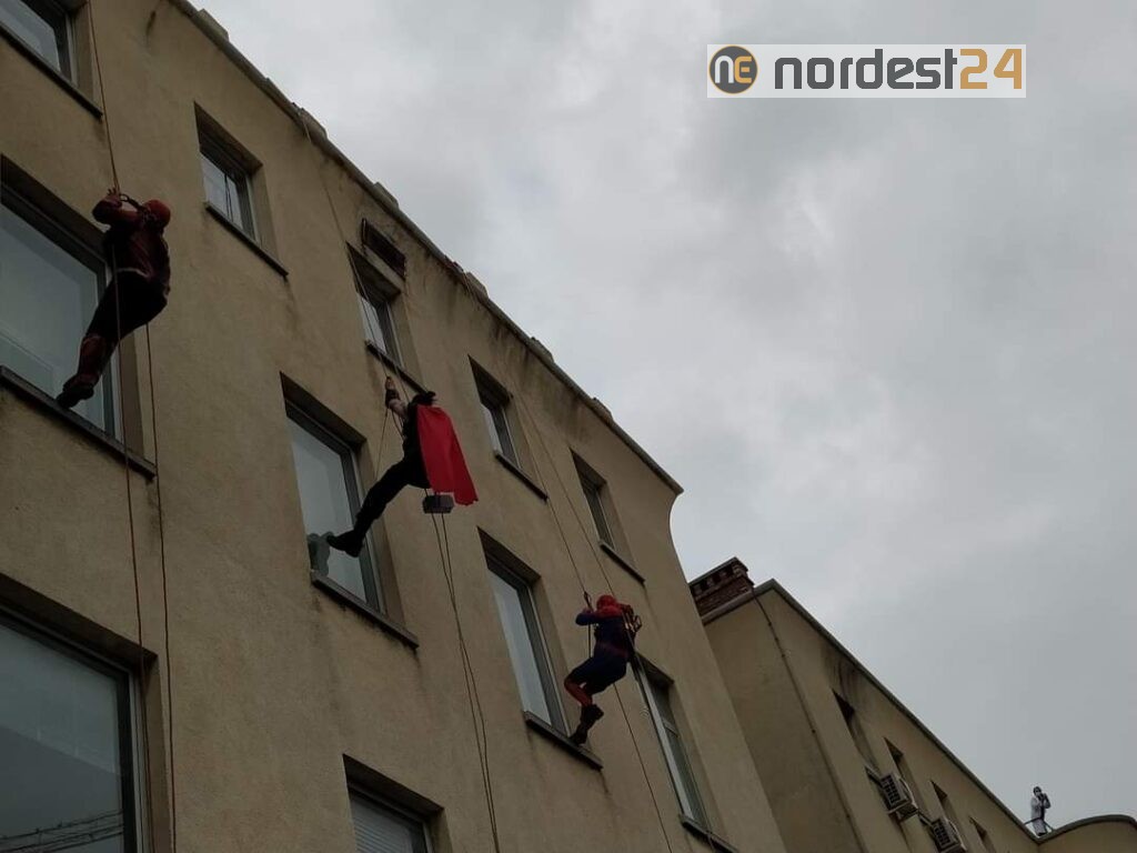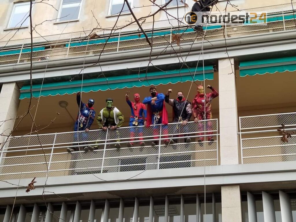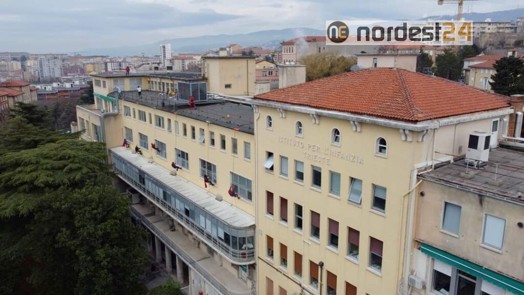 Supereroi si calano dal tetto del Burlo: la speciale visita ai piccoli pazienti