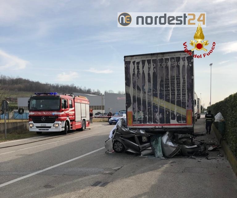 Alle 13 circa, i vigili del fuoco sono intervenuti in via Astico a Fara Vicentino lungo la strada provinciale per un'auto finita contro un mezzo pesante parcheggiato: deceduto un giovanissimo autista di Salcedo.