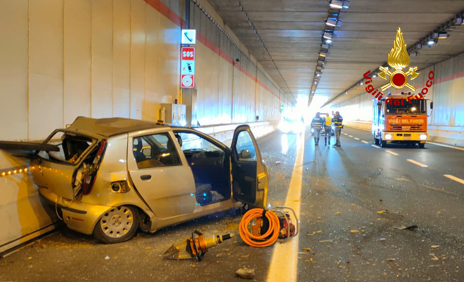 Tampona un'auto ferma in galleria ed investe un operaio: gravissimo