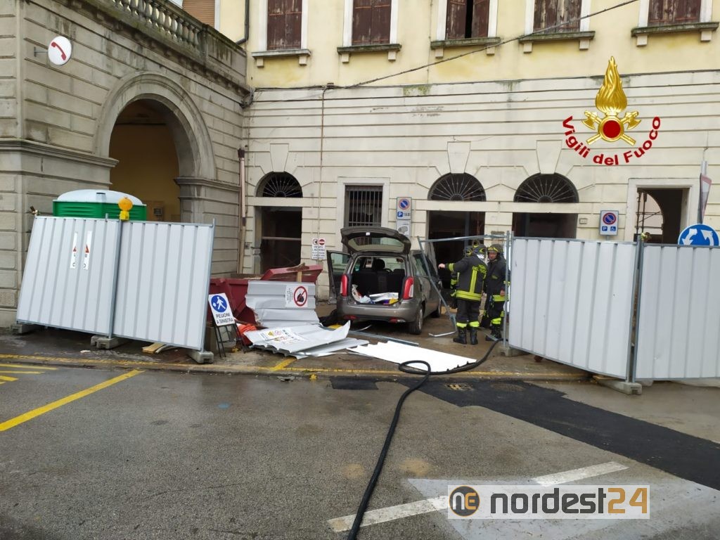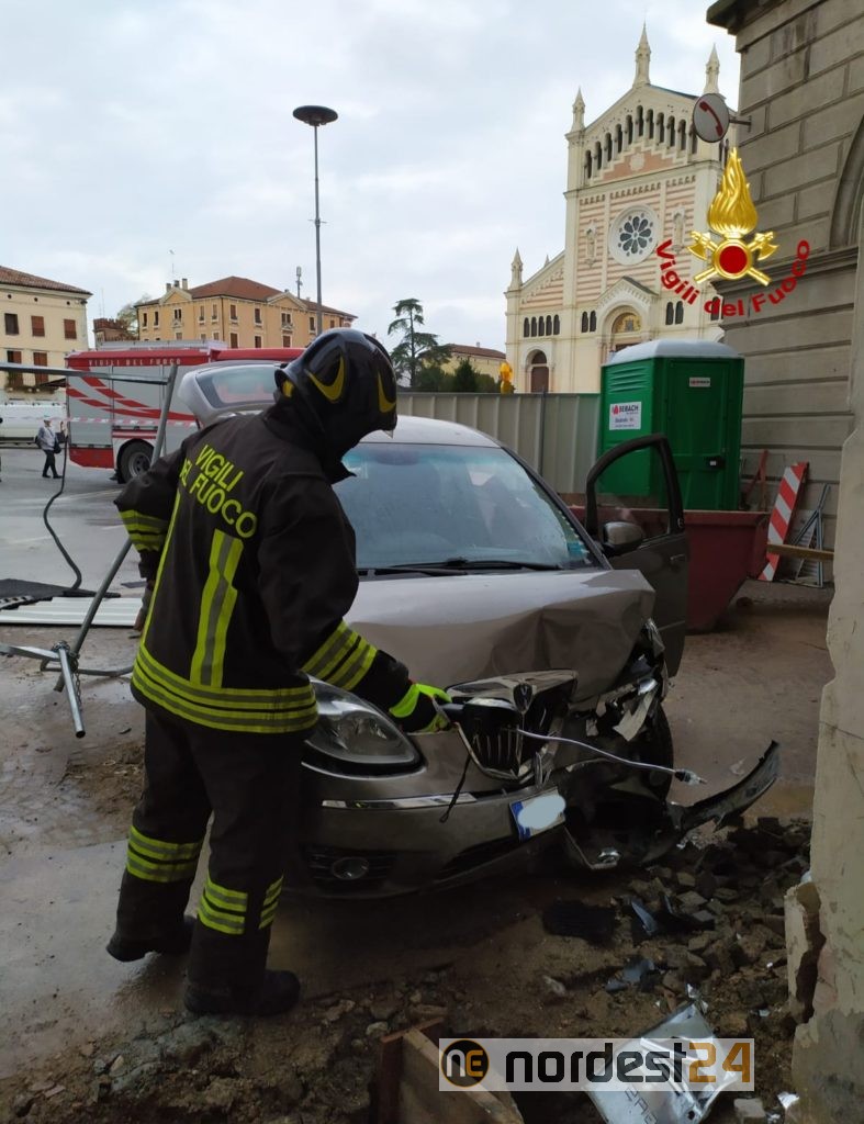 LONIGO (VI). Alle ore 11:30 intervento dei vigili del fuoco nella centralissima Piazza IV Novembre a Lonigo per un’auto finita contro un contatore, la quale precedentemente aveva tamponato un piccolo veicolo commerciale e poi sfondato la delimitazione in lamiera di un cantiere di una palazzina: ferita la donna alla guida.