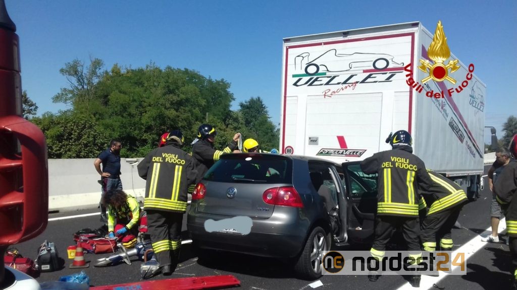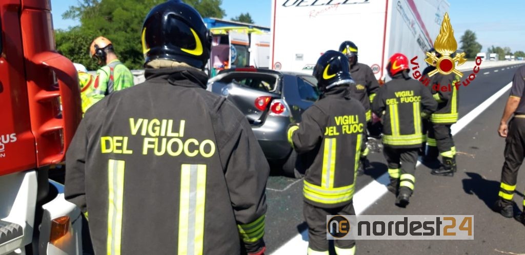 Alle 13:30, i vigili del fuoco sono intervenuti lungo l'autostrada A4 tra i caselli di Portogruaro San Stino di Livenza al km 444 in direzione Trieste per il tamponamento di un autoarticolato da parte di un'auto il cui conducente è rimasto ferito.