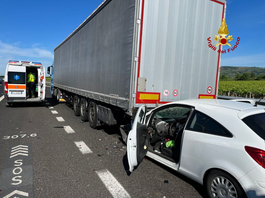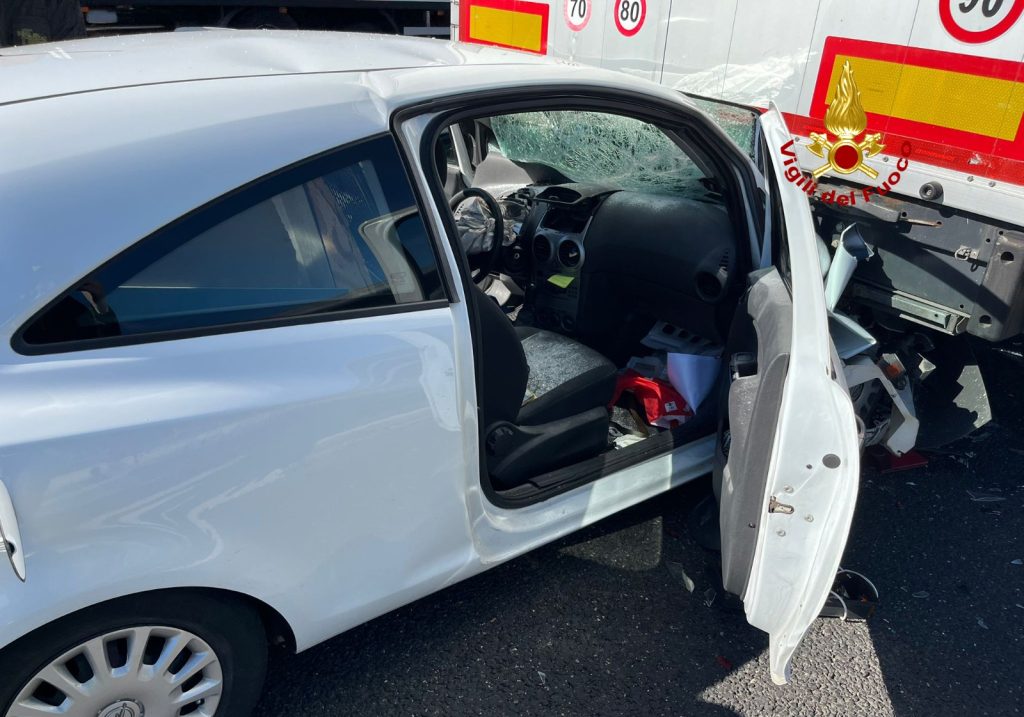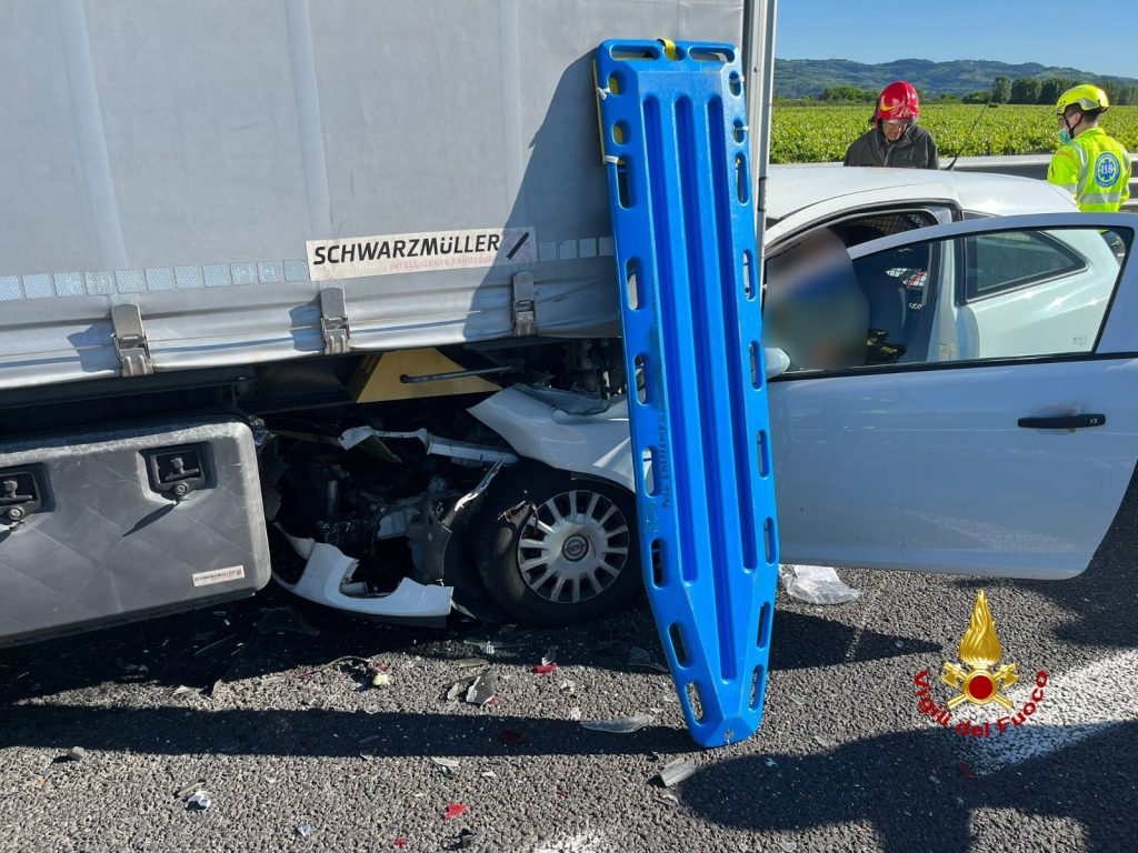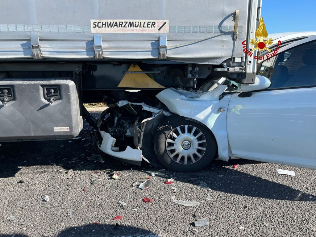 Tamponamento in A4, auto incastrata sotto al Tir: grave l’autista