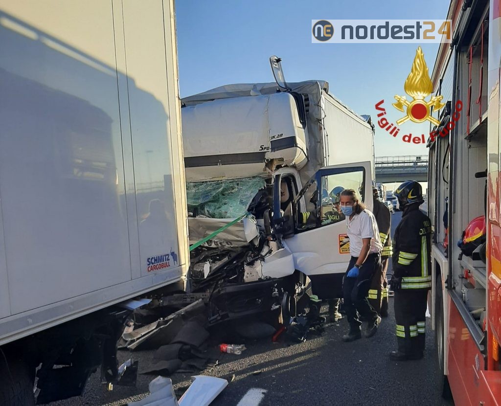 Nel luogo dello schianto erano state segnalate dai pannelli a messaggio variabile code per circa 10 chilometri da San Donà a Cessalto, a causa della perdita del carico (5 bobine di ferro dal peso di una tonnellata l’una) dal rimorchio di un tir poco dopo le 16,00.