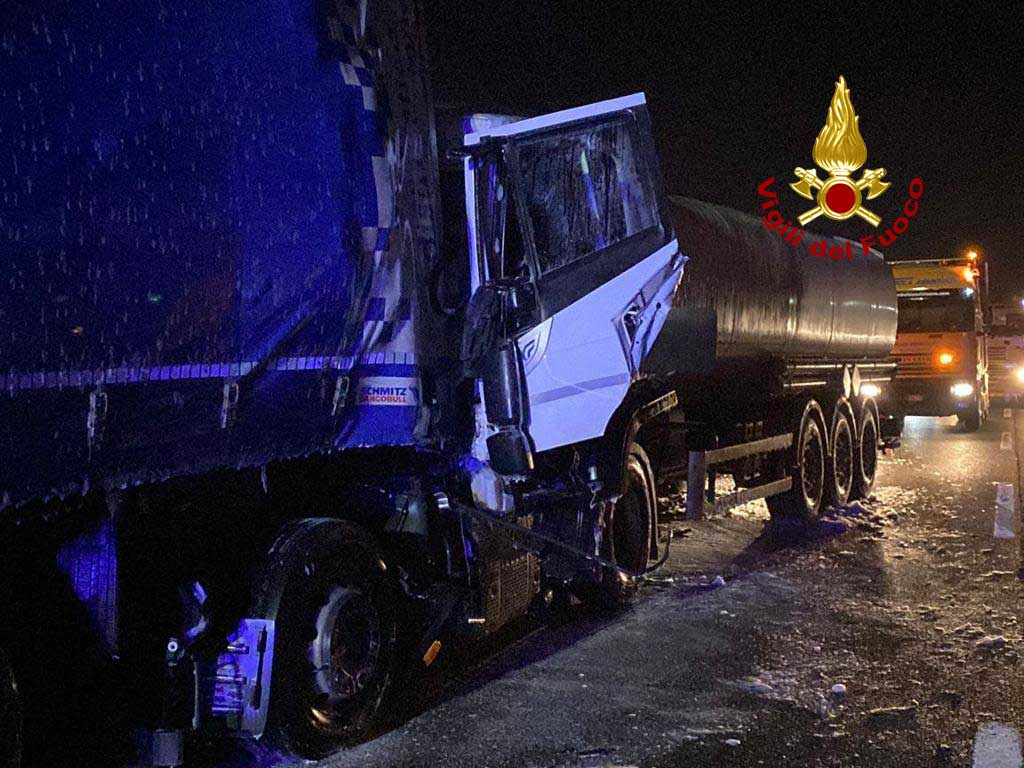 Alle 4:10 di giovedì, i vigili del fuoco sono intervenuti lungo l’autostrada A4 tra il casello di Padova Ovest e Grisignano nel territorio di Villafranca Padovana per l tamponamento di un autoarticolato da parte di un mezzo pesante adibito a trasporto carburante: ferito un autista.