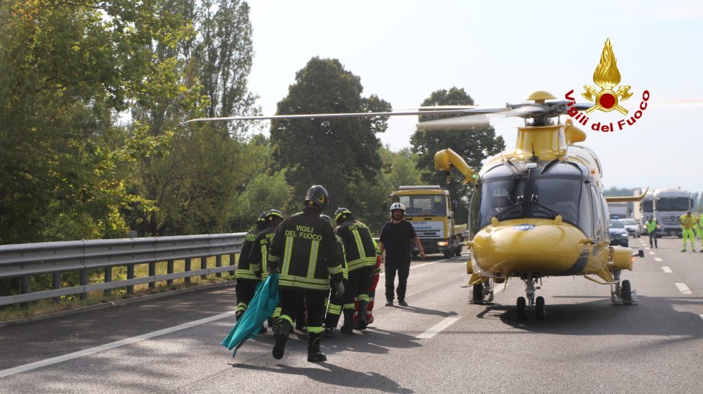 Durante le operazioni di soccorso l'autostrada è rimasta bloccata per permettere l'atterraggio dell'elicottero. Sul posto la Polstrada e personale ausiliario di autostrada. Le operazioni di soccorso dei vigili del fuoco sono terminate dopo circa un'ora.